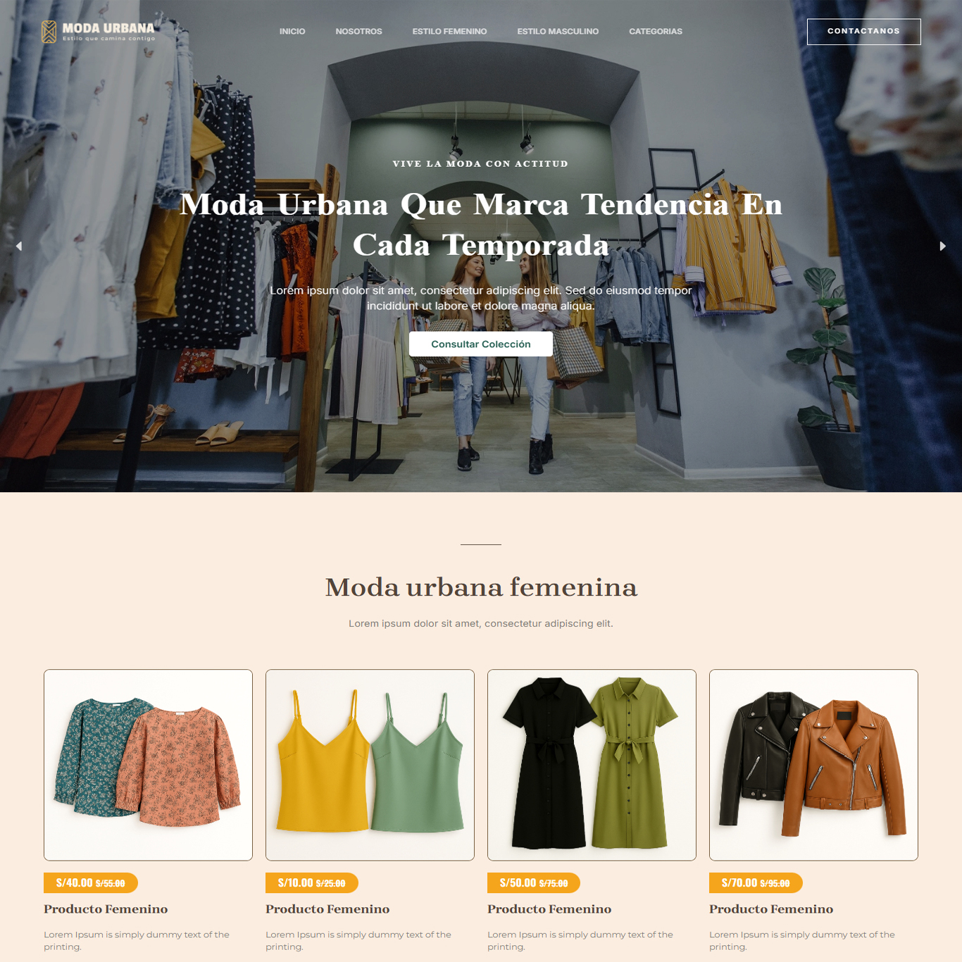 Diseño moderno y versátil pensado para marcas de moda urbana. Perfecto para exhibir tus colecciones, prendas icónicas, descuentos y accesorios en un formato visualmente atractivo y de fácil navegación. Refleja una identidad profesional que transmite autenticidad, estilo y confianza, motivando a tus clientes a expresar su personalidad a través de la ropa.