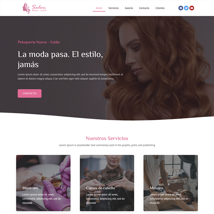 Nuestra plantilla web para peluquería es la solución perfecta para cualquier negocio de cuidado del cabello que busque tener una presencia en línea elegante y profesional. Con un diseño moderno y limpio, esta plantilla es fácilmente personalizable y se adapta a cualquier marca.